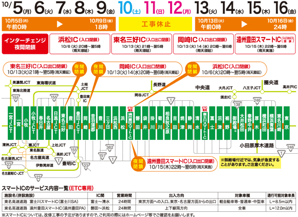 工事期間中は閉鎖される区間や、ICがありますので