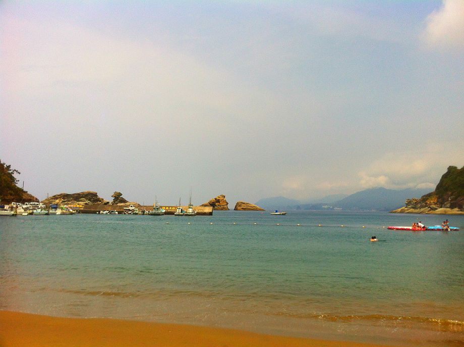 沖にある夫婦岩がシンボル的な海水浴場ですね。
