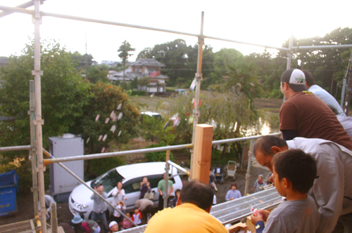 16時過ぎた頃から上棟式が始まり、棟梁の祝詞奏上の後