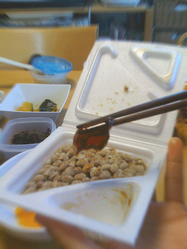 納豆の上に乾燥防止の為に敷かれている薄いフィルムが