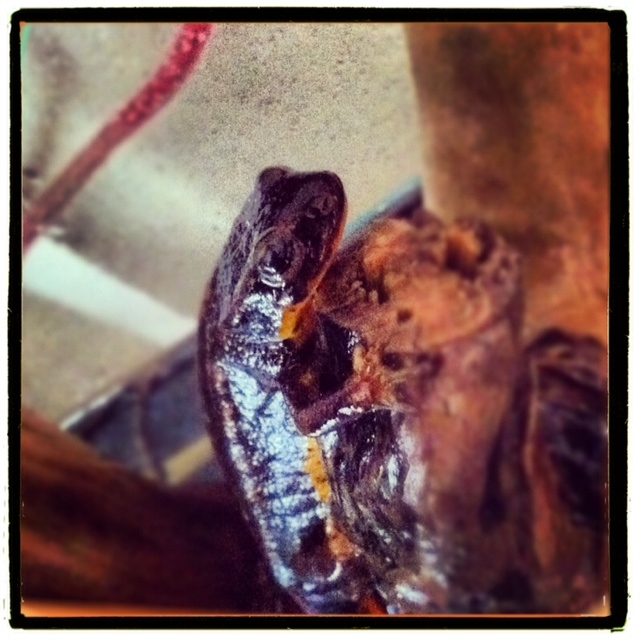 両性類というだけあって普段は水槽の中の水中で過ごすのですが