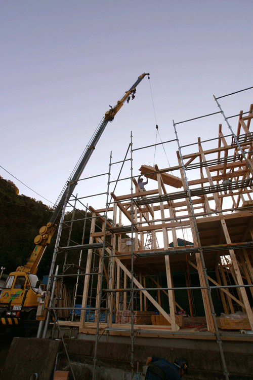 今日は沼津市内におきまして、S様邸の棟上げでした。