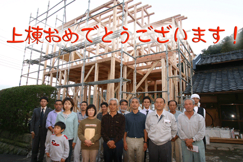 作業も順調に進み、予定通り16時半から上棟式を行いました。