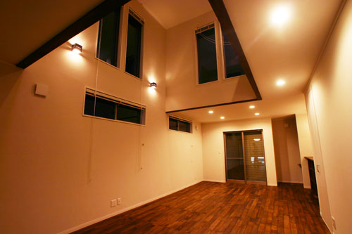 見学会に来場された方は、昼間のシャープなイメージからの変化が