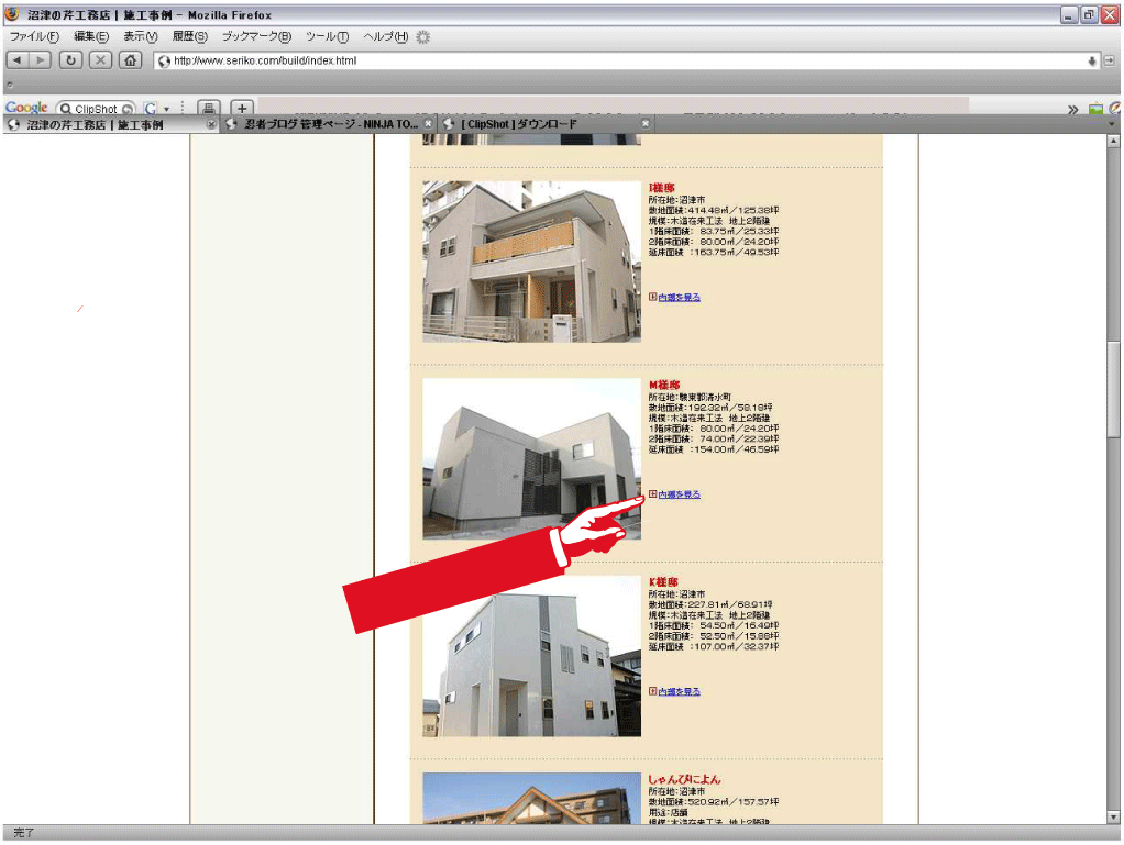 芹工務店の施工例の中の以下の部分をクリックしてご覧下さい。