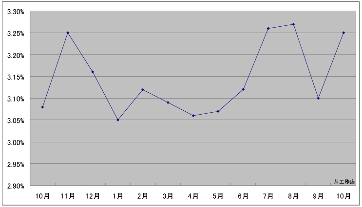 以下は静岡県労働金庫のフラット35の金利変化です。