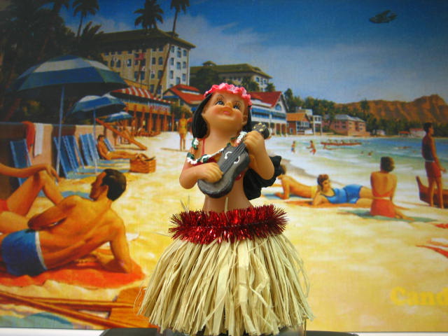 ハワイの雰囲気がプンプンする置物です。人形の下にバネがあり