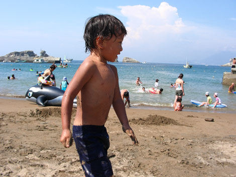 前半を奥さんの実家で過ごし、後半は義兄家族が東京から西伊豆の民宿へ