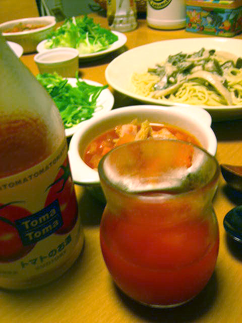 せっかくトマトのお酒なので、奥さんに頼んで合いそうなメニューしてもらいました。