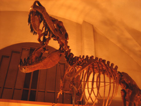 上の写真は博物館入り口にある恐竜の模型なんですが