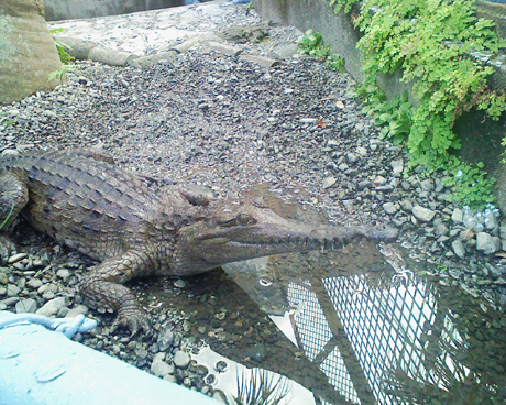 手を伸ばせば届きそうな距離にいろいろな種類のワニがいるんですよ。
