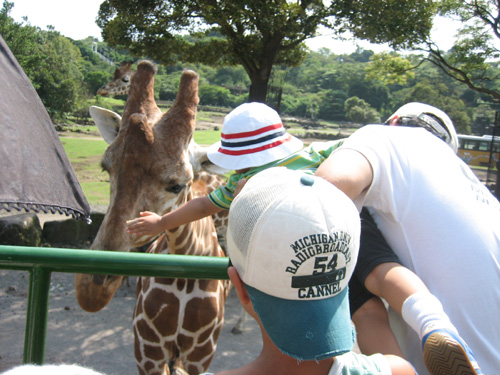 キリンに自由にエサを与え、触れられることにビックリしました。