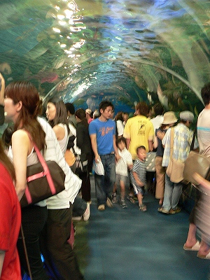 人ごみで水槽はほとんど見えない