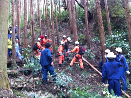 あとは山道を自分たち消防団が担架にのせて慎重に降りていきました。