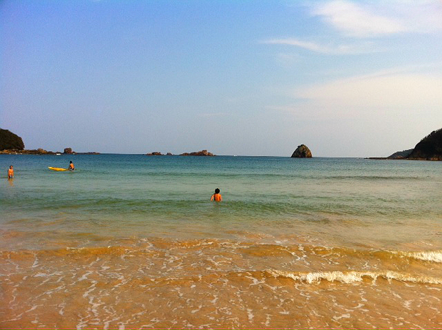 目指す海岸へ到着してみると人はやっぱりまばら、日光浴している人や