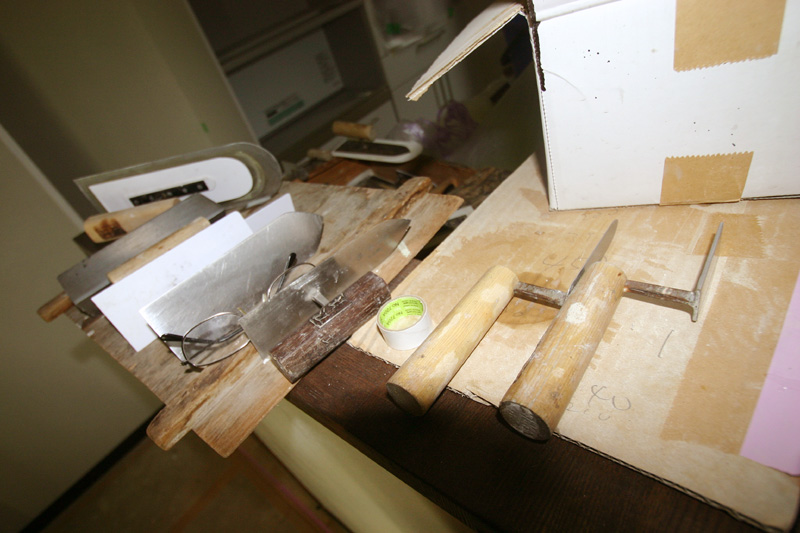 このまっ平らな塗り方でもこんなに大小様々なコテを使うのですね。