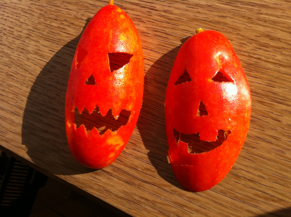ちょっと時期遅れてしまいましたがハロウィン風のカラスウリです。