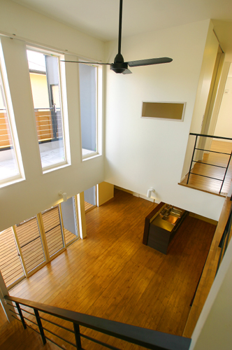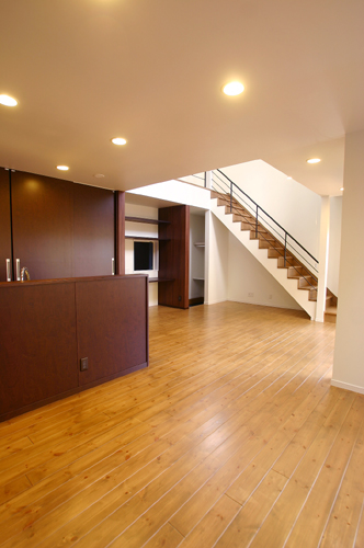 【南面は隣家が接近していますが、吹抜けのおかげでこんなに明るい空間に・・・】
