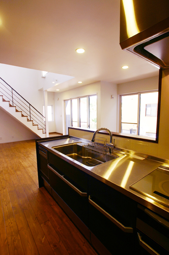 【家族だんらんの風景が浮かぶ対面キッチン】
